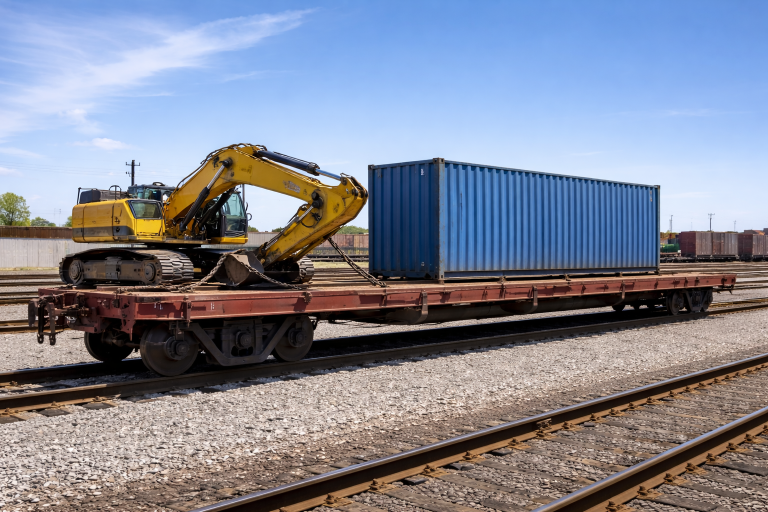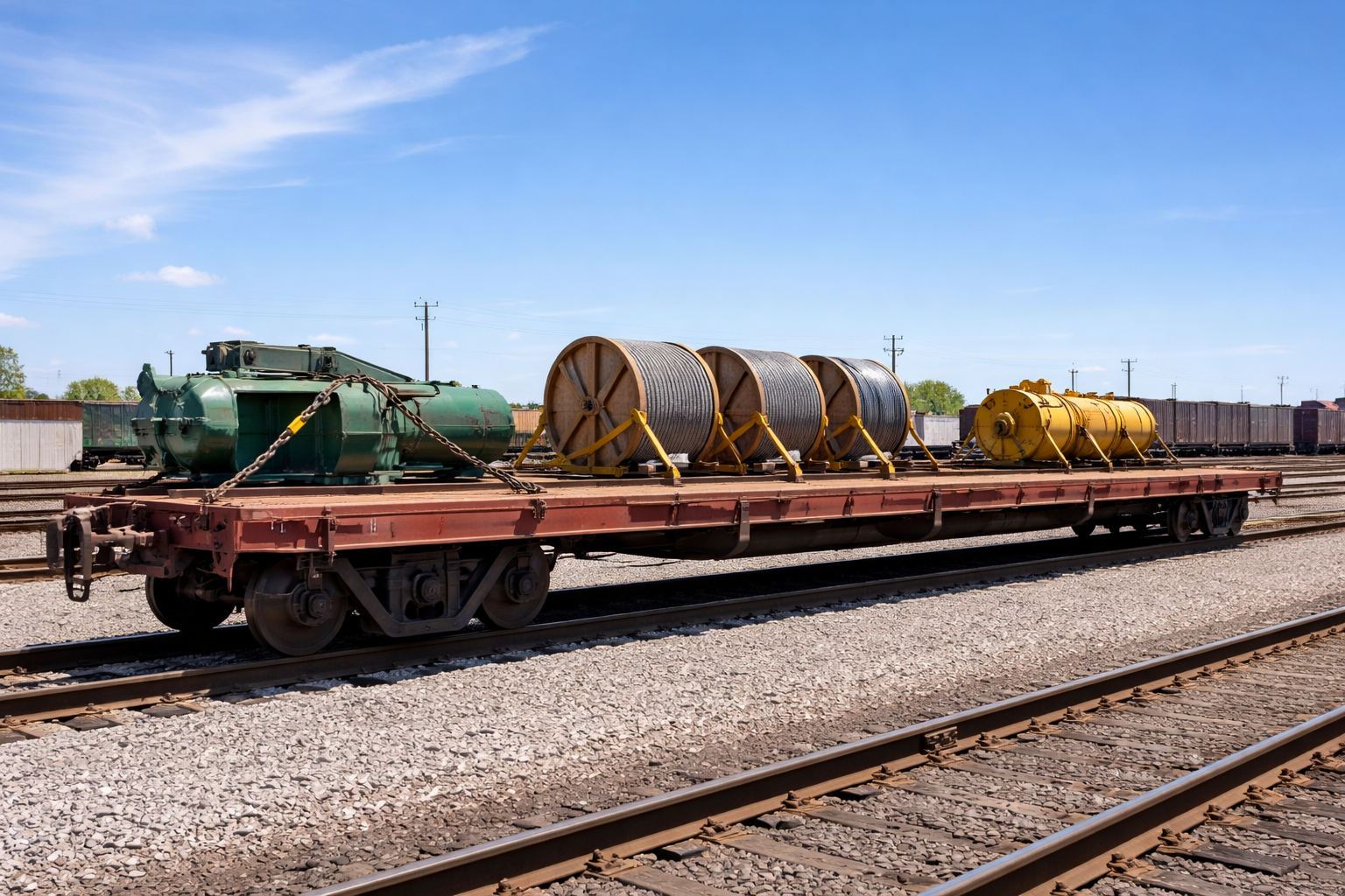 Một số loại phương tiện, khung kim loại hoặc kết cấu dạng khối có thể được vận chuyển trên toa sàn nhờ thiết kế linh hoạt. Không gian mở giúp bố trí hàng hóa theo phương án phù hợp với kích thước và trọng tâm.